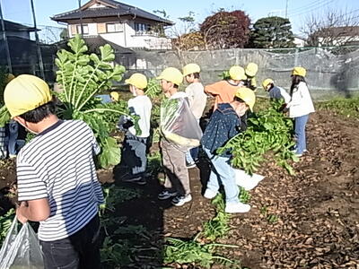 校内にある「むくろじ農園」も収穫の時期を迎えています。2年生が大根の収穫をしました。大きく育った大根を見て、子どもたちは大喜びです。収穫したものは、お家に持ち帰りました。満足気な顔で下校する子どもたちがたくさんいました。