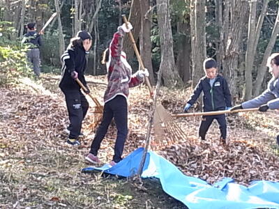 糀谷八幡湿地で落葉掃きが行われました。寒い中ではありましたが、落葉をきれいに掃き、肥料をつくる場所まで運ぶなどの作業をしました。大人も子どもも汗をかきながら作業をしました。