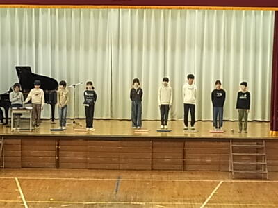 今日は、2学期最後の日。朝、終業式を行いました。最初に「校歌斉唱」をしました。きれいな歌声が体育館内に響き渡りました。