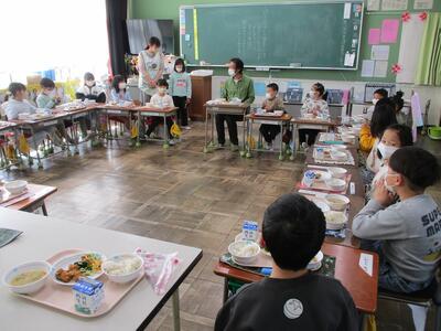 食べ始めるときには「給食当番さん・給食調理員さん・野菜を作ってくださった皆さんありがとうございました。いただきます」、食べ終わりは「ごちそうさまでした。おいしかったです」と素敵な挨拶をしてくれました。