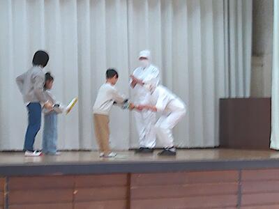 その後、朝食の大切さなどを劇にしたりクイズにしたりして発表していました!内容やセリフをよく考えて、しっかりと発表することができました!