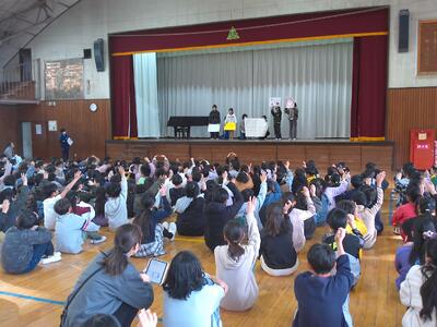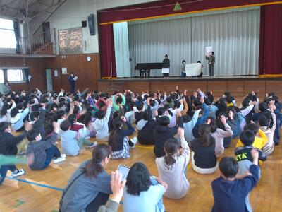 【児童朝会!給食委員会の発表】