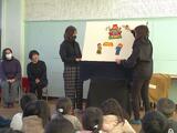 パネルシアターや布芝居、大型紙芝居など、子どもたちを楽しませる趣向を凝らしたお話し会で、1年生も2年生もとても楽しそうにお話しに聞き入っていました!