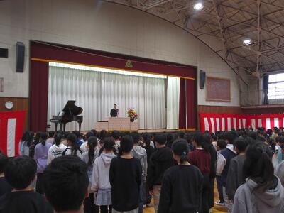また、今日は各クラスから選ばれた代表2名ずつ計4名が、学年全体の前でプレゼン発表をしていました!広い体育館で、堂々と発表していました!さすが、6年生です!!