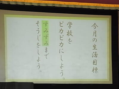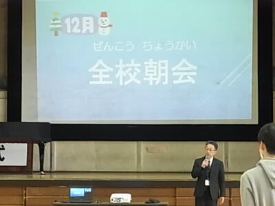 【12月の全校朝会】 投稿: 三ケ島小学校 (19:00) 今朝は、12月の全校朝会を行いました。校長先生からは、「いじめは絶対にしない!させない!」というお話がありました。 生活目標のお話は、「すみずみまできれいにしよう」ということで、掃除の仕方についての話がありました。 皆真剣に集中して聞くことができました!(^-^)