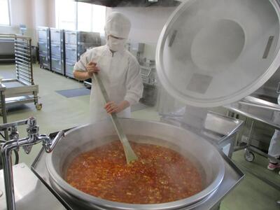 2学期最後の給食は、クリスマスメニューです。チキン、サラダには星や雪だるま、ミネストローネにも星が入っています。いつもより手をかけて、心を込めて作ってくれました。