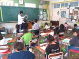 2組は、体育の授業中で、皆で長縄8の字跳びにチャレンジしていました。ひとりひとりが回転する縄にスムーズにはいれるように、それができるだけ続けられるように、お互いに声を掛け合って、励まし合って練習していました。!(^^)!
