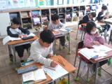 1組は、国語の授業中でした。「詩の楽しみ方を見つけよう」という単元で、教科書や本から「お気に入りの詩」を選んで試写する活動をしていました。それぞれの詩には、何が、どのように書かれているのかを、読んで楽しみ、自分なりの理由をつけて選んでいました。( ´∀`)
