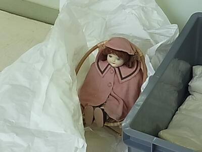 狭山市立博物館にお出かけしていた「ルシールちゃん」と「市松人形」が2か月振りに帰ってきました。