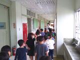 各学年の教室や特別教室、図書室、保健室、体育館、校長室など、皆で並んで静かに探検することができました。