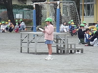 次に児童代表の言葉で、1年生が今年1年頑張ったことを話しました。来年度も様々なことにチャレンジしたいと誓っていました。