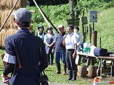 糀谷八幡湿地保存会会長、所沢市長、秋山校長のご挨拶の後、稲刈りの仕方を教わって