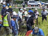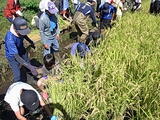 糀谷八幡湿地の稲刈りが行われました。田植えをした5年生を中心に行われました。