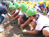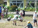 子どもたちは、地域ボランティアの方にご指導をいただきながら、一本一本丁寧に間引いていました。間引いた大根の赤ちゃんがもったいないと思ったのか、「持って帰りた~い」という声があちらこちらで聞かれました。