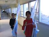 先日、児童朝会で代表委員会から提案のあった「あいさつでクラス一周の旅」の取組が、いよいよ今日から3日間行われます。朝、代表委員児童が各クラスに1本のバトンを渡します。