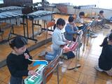 1年生をグループに分けて、音楽委員会の児童(5・6年生)が分担して、電子オルガンや木琴、鉄琴、その他の打楽器の4か所のローテーションで体験させてくれました。