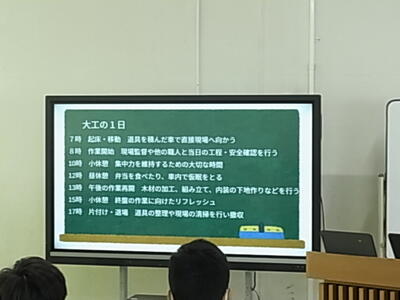 「12年後の自分に届け」と題して、自分が将来、就きたい職業について調べ、その仕事内容や遣り甲斐、今の自分にできることなど、プレゼンテーションソフトを活用して聞き手に分かりやすく発表していました!